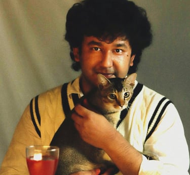 Priyanuj Mazumdar is a writer, editor, educator, and musician from northeast India. Having spent his formative early twenties living and studying writing in Southwest London and the American Midwest, he received his MA in Creative Writing from Kingston University, London. Currently an MFA candidate in Creative Writing at Minnesota State University, Mankato, he received the Nadine B. Andreas Endowment for 2025-26. He was shortlisted for the Leopold Bloom Prize for Innovative Narration and featured in RUNT Magazine’s Young Creatives series. His work has appeared or is forthcoming in the Los Angeles Review, BULL, Allium: A Journal of Poetry & Prose, Southern Review of Books, Harbor Review, Roi Fainéant Press, Blood+Honey, NonBinary Review, The Lincoln Review, Resurrection Mag, Rinky Dink Press, and elsewhere. His short story “How to Go Cold Turkey on the Coldest Night of the Year” was featured in HellBound Books’ Anthology of Extreme Horror. He is the Senior Fiction Editor at JMWW and Prose Reader at The Adroit Journal. His cat Oreo is his spirit animal.